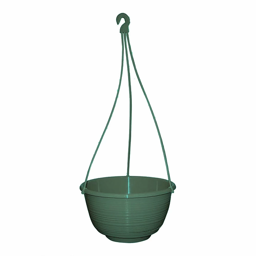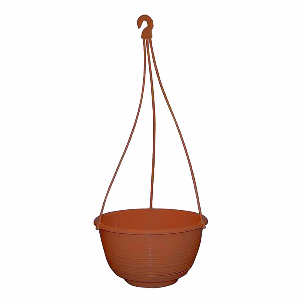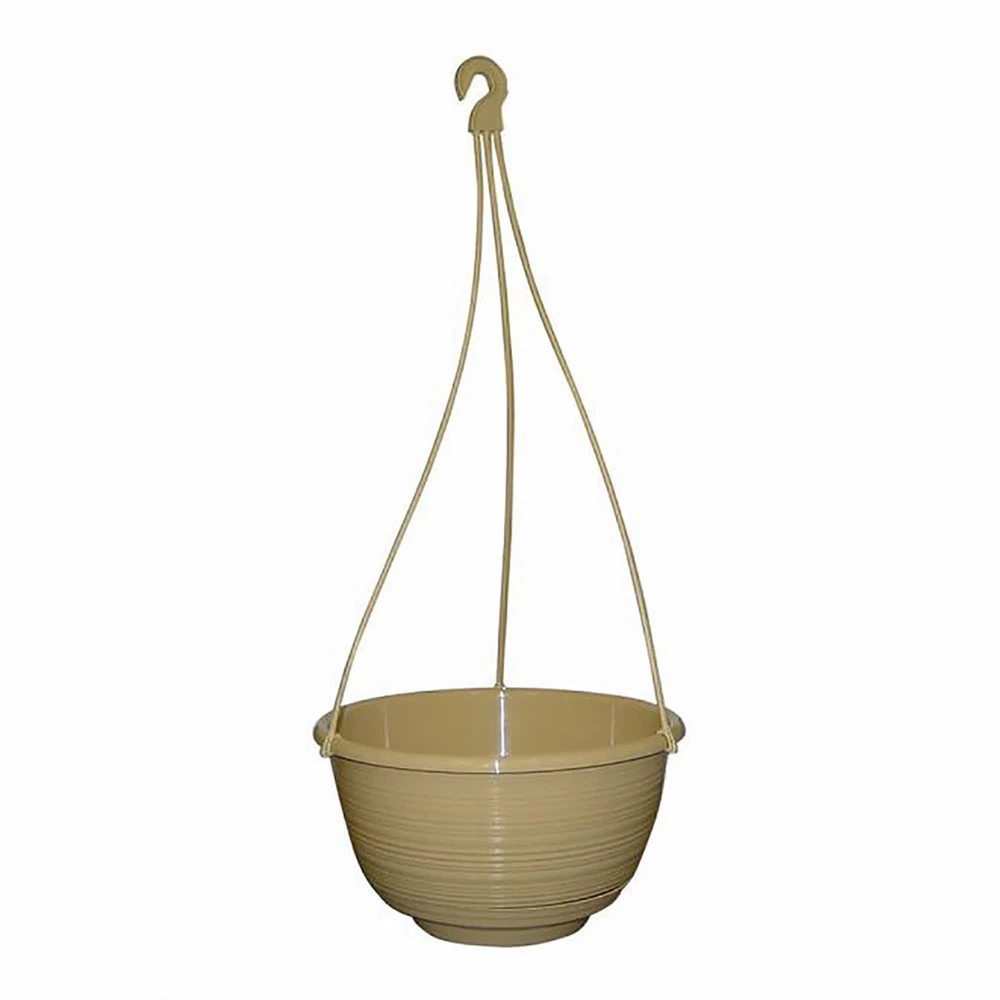 This decorative hanging basket container comes complete with hanger and saucer in one carton.